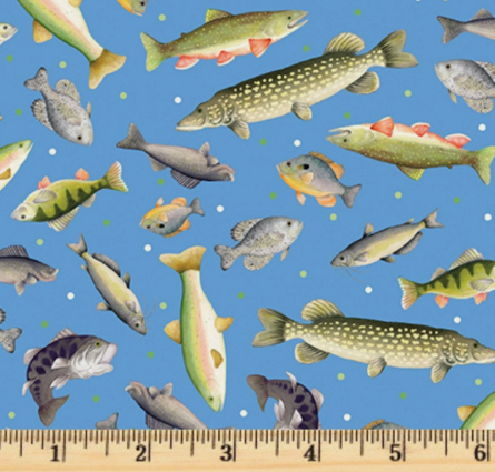 Freshwater fish on a blue background with dots from the Sail Away collection.