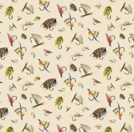 Fishing flies and lures on a cream background from the Fishful Thinking collection.