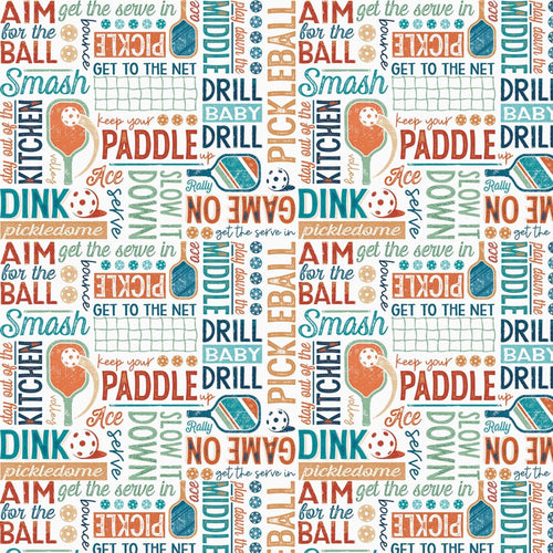 P&B Textiles - Pickleball Champ - 4-Way Text White - 1/2 YARD CUT