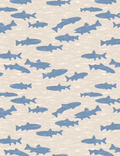 Wilmington Prints - Gone Fishing - Fish Silhouettes Cream/Blue - 1/2 YARD CUT