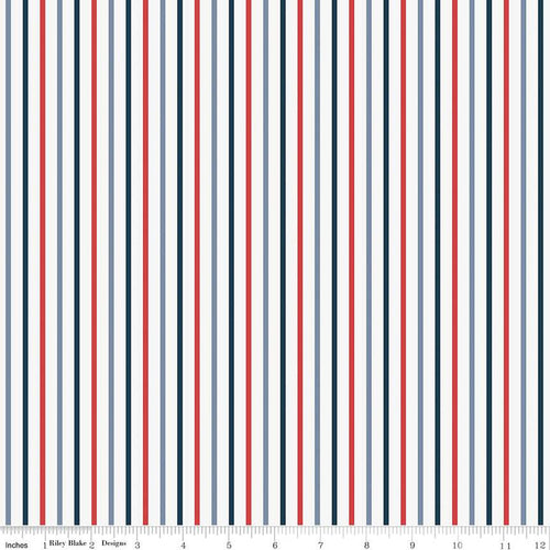 Riley Blake - Red, White & True Stripes Off White - 1/2 YARD CUT