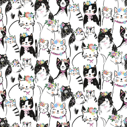 Timeless Treasures - Just Purrfect - Pretty Cats & Florals - 1/2 YARD CUT
