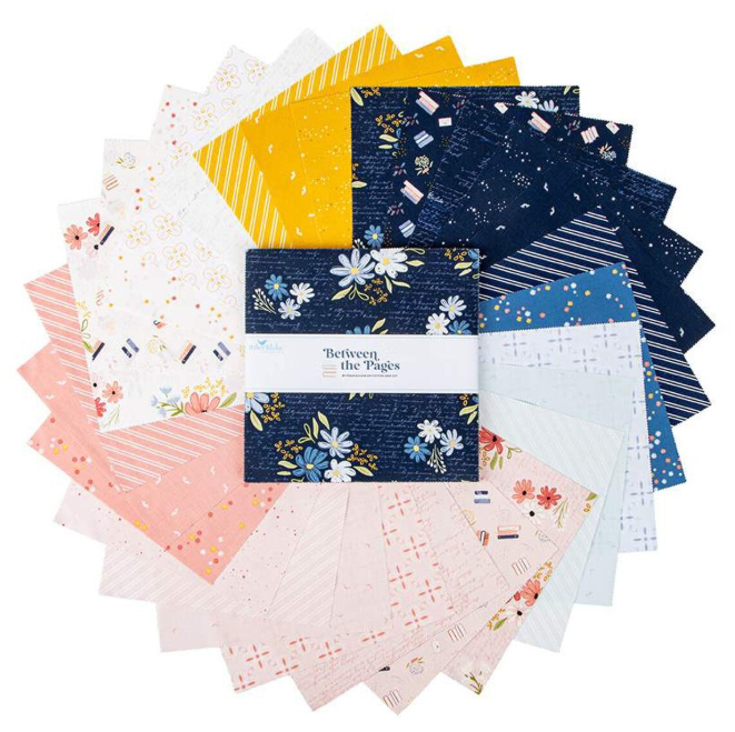 This is a great literary and floral collection in blues, pinks and yellow. This 10" Stacker precut bundle includes 42 pieces from the Between the Pages collection by Fran Gulick of Cotton and Joy for Riley Blake Designs. Each print will be included 1-2 times in the bundle. Designs include books, florals and blenders.