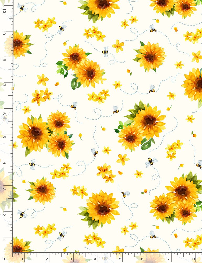 Timeless Treasures - Hello Sunshine - Sunflowers and Bees - 1/2 YARD CUT