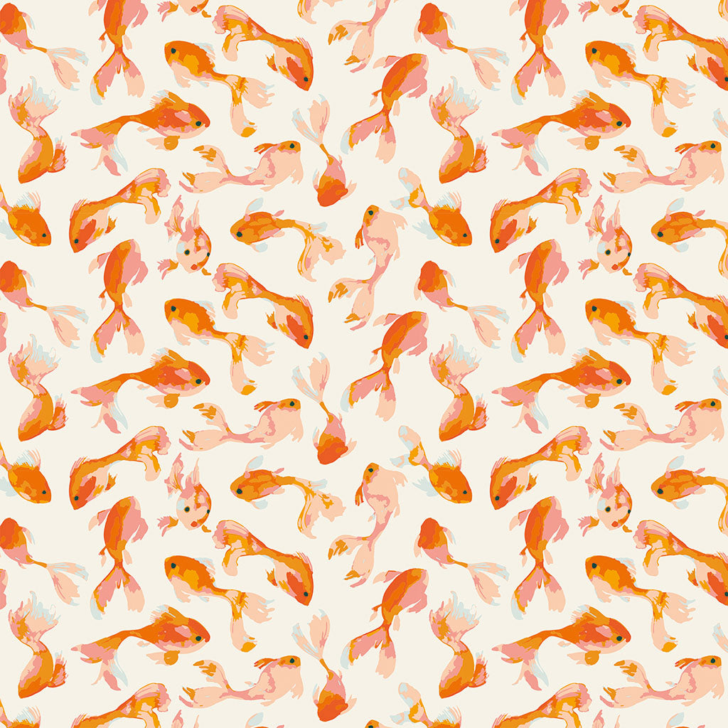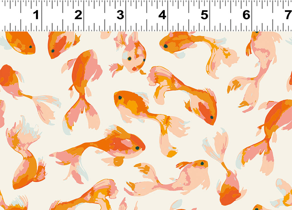 Beautiful print with watercolor goldfish on a cream background from the Stephanie collection.