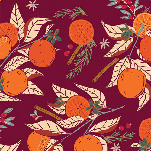 Holiday print with oranges, cloves and cinnamon sticks from the Season & Spice collection.