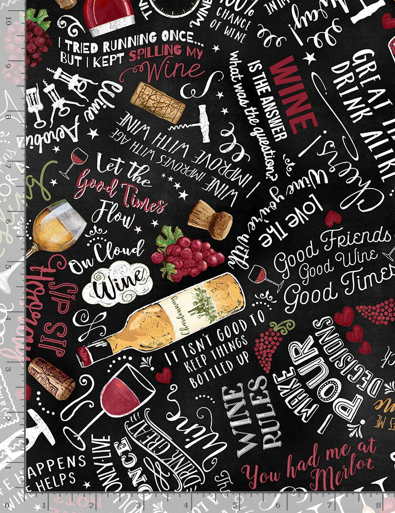 Funny wine-related sayings and motifs on a black background from the Uncork & Unwind collection.