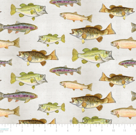 Camelot - Fishful Thinking - Fish Taxidermy - 1/2 YARD CUT