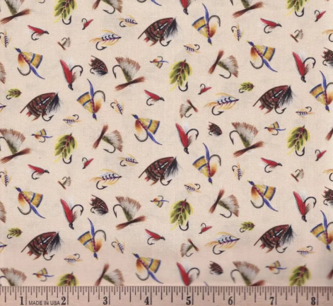 Fishing flies and lures on a cream background from the Fishful Thinking collection.