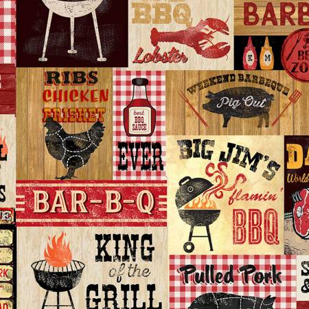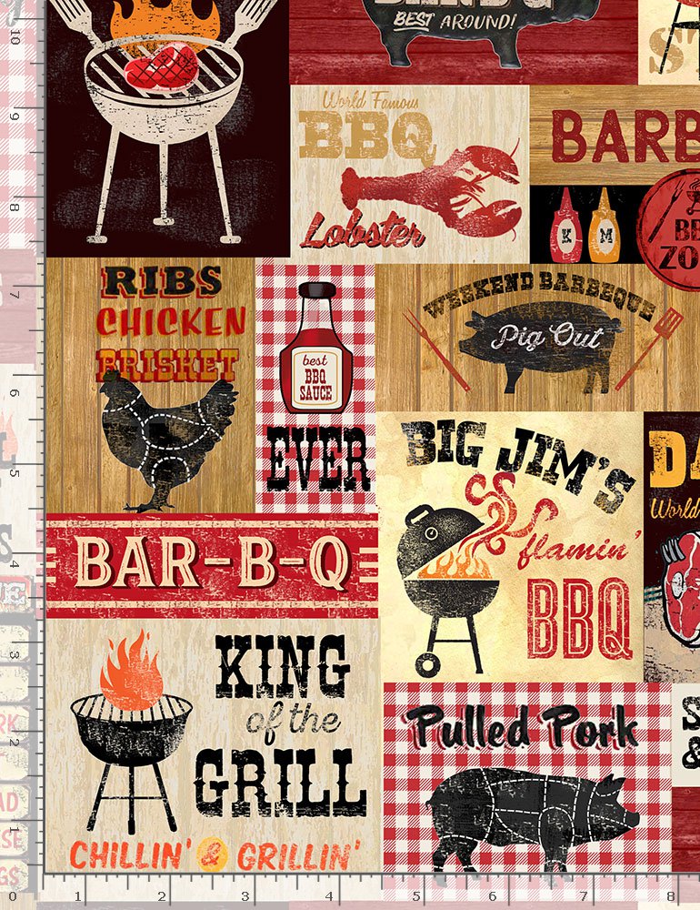 Timeless Treasures - King of the Grill BBQ Sign Patch - 1/2 YARD CUT