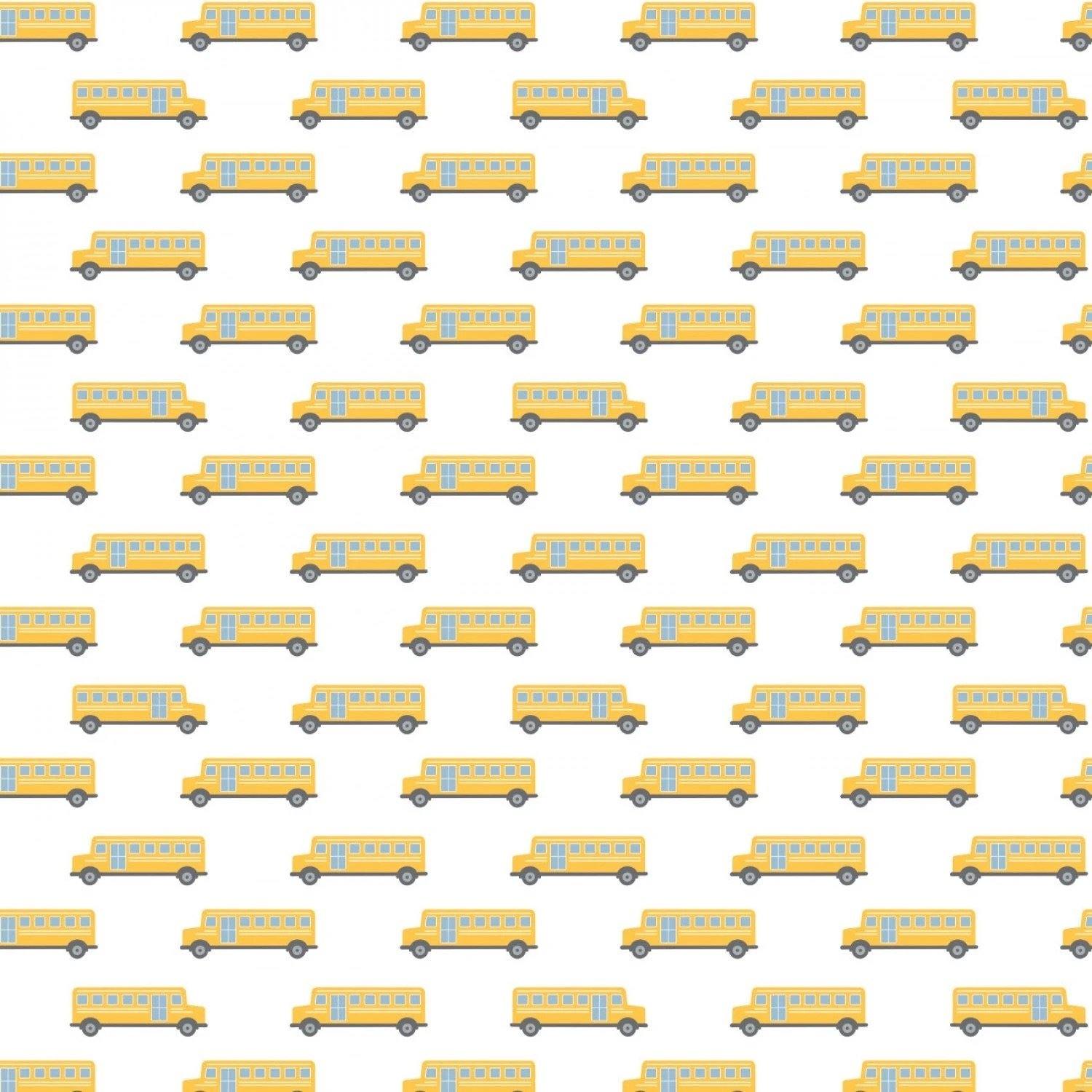 Great small scale school buses on a white background. Fun back to school fabric from the Teachers Rule line.