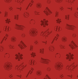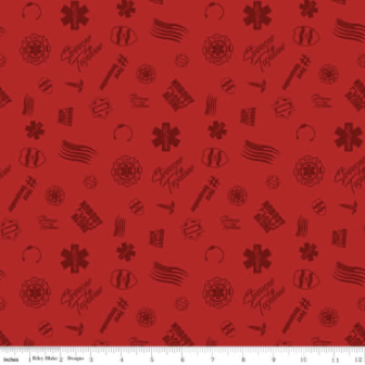 Dark red first responder symbols on a red fabric from the Nobody Fights Alone collection.