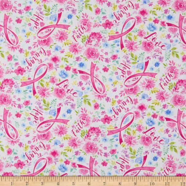 Breast cancer awareness pink ribbons with floral print on an ivory background from the Pink Ribbon collection.