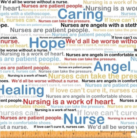 Colorful nursing heroes words allover on a white background from the Calling All Nurses collection.