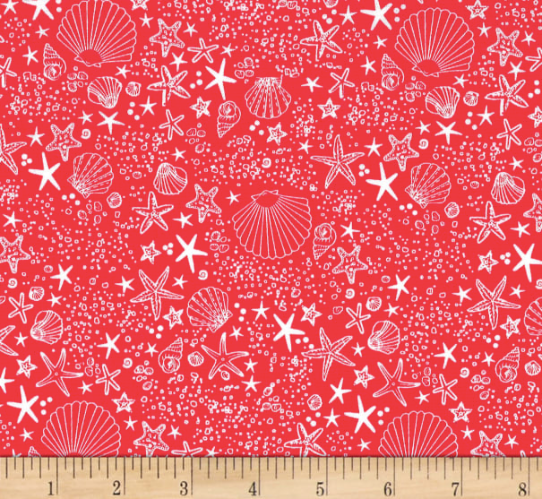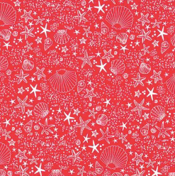 Adorable white shells and starfish on a beautiful red fabric from the Just Shellin' collection.