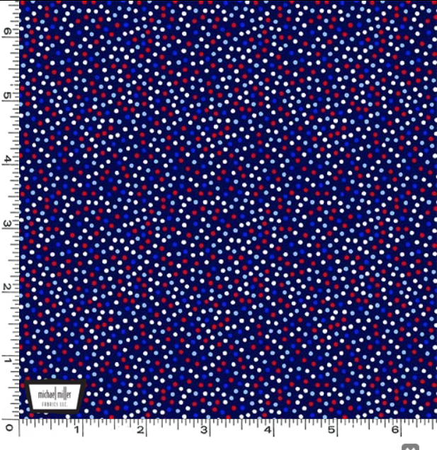 Tiny dots in red, light blue and dark blue on a dark blue background from the Garden Pindot collection.