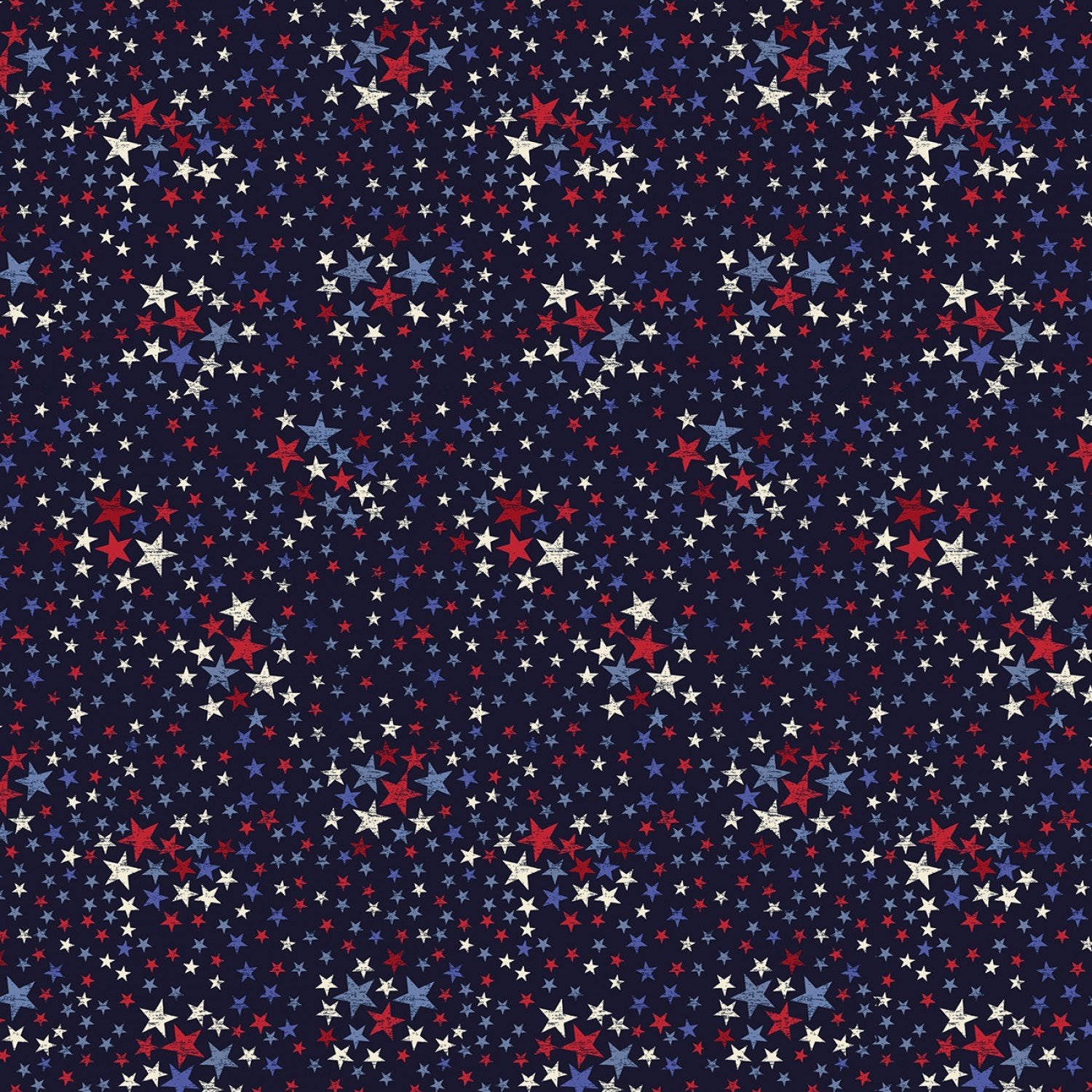 Tiny, red, white, and blue stars on a navy background. Cute, patriotic fabric from the Let Freedom Ring collection.