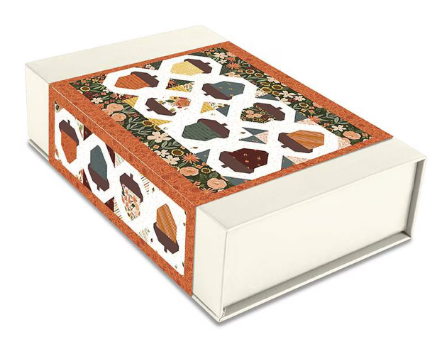 This sweet, quilted table runner kit is from the Happy Fall Days collection by Kelsey Carlson for Riley Blake Fabrics. Pattern is by Lori Holt. Kit includes all the fabric needed for the runner top and binding plus a printed pattern to complete the project. Finished runner measures 15" x 65". Comes in a sturdy reusable box.