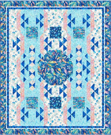 Diagonally set easy-to-piece blocks made with quick-corner triangles and triangle units. Fabrics shown from the Ocean Paradise collection by QT Fabrics. Skill Level: Intermediate