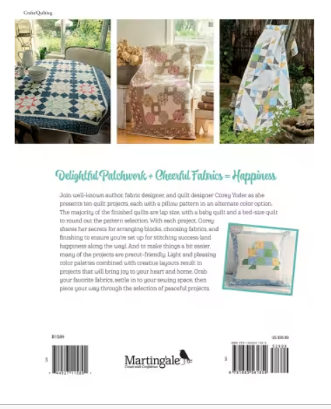 Join well-known author, fabric designer, and quilt designer Corey Yoder as she presents ten quilt projects, each with a pillow pattern in an alternate color option. The majority of the finished quilts are lap size, with a baby quilt and a bed-size quilt to round out the pattern selection. With each project, Corey shares her secrets for arranging blocks, choosing fabrics, and finishing to ensure you're set up for stitching success (and happiness along the way). And to make things a bit easier, many of the projects are precut-friendly. Light and pleasing color palettes combined with creative layouts result in projects that will bring joy to your heart and home. Grab your favorite fabrics, settle in to your sewing space, then piece your way through the selection of peaceful projects.