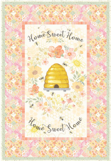 Sweet quilt with a bee and floral theme and the sentiment Home Sweet Home.