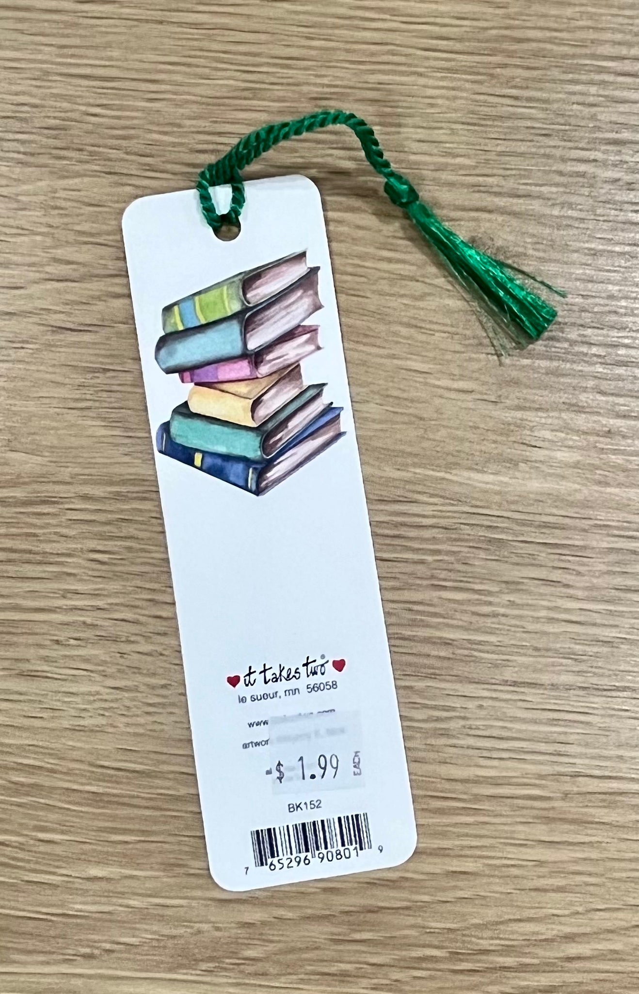 One 1.75in x 6in bookmark with rounded corners and color-coordinated tassel. Printed on recycled paper with 30% post-consumer waste. Proudly made in the U.S.A. Artwork by Nancy E. Mink.