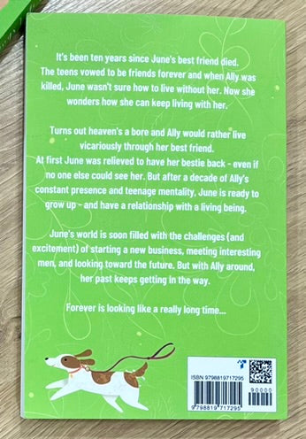 It's been ten years since June's best friend died. The teens vowed to be friends forever and when Ally was killed, June wasn't sure how to live without her. Now she wonders how she can keep living with her. Turns out heaven's a bore and Ally would rather live vicariously through her best friend. At first June was relieved to have her bestie back - even if no one else could see her. But after a decade of Ally's constant presence and teenage mentality, June is ready to grow up - and have a relationship with a living being. June's world is soon filled with the challenges (and excitement) of starting a new business, meeting interesting men, and looking toward the future. But with Ally around, her past keeps getting in the way. Forever is looking like a really long time.