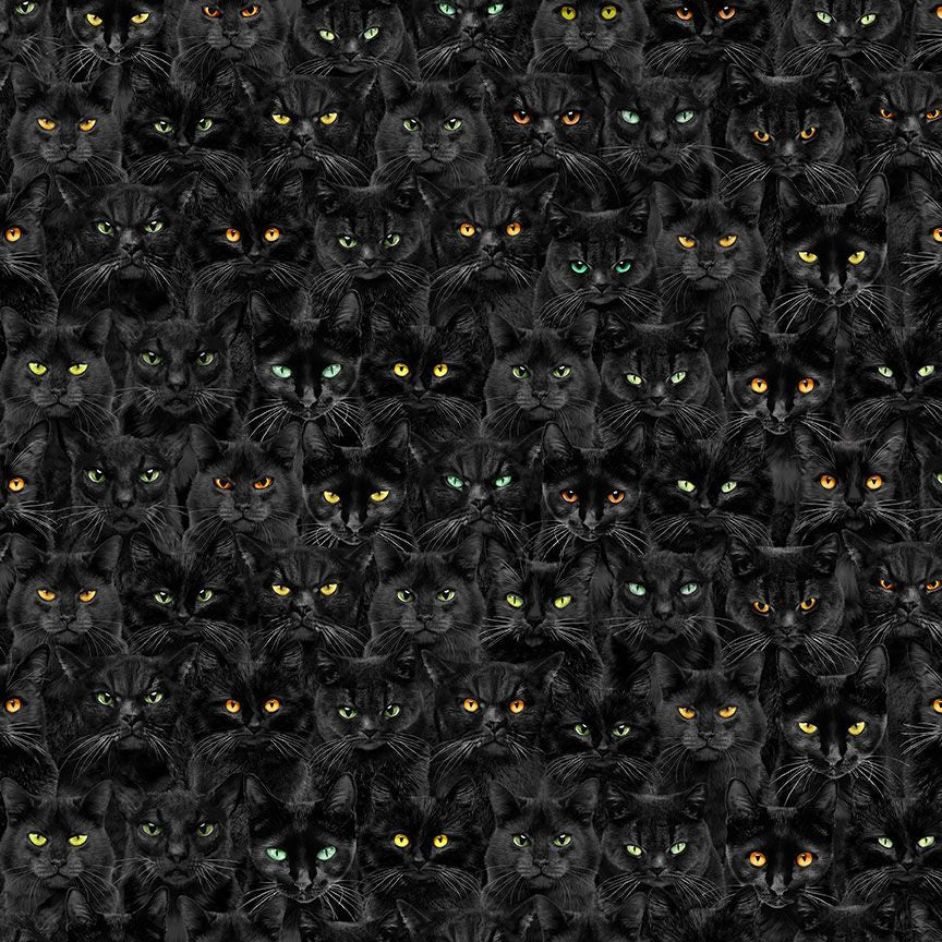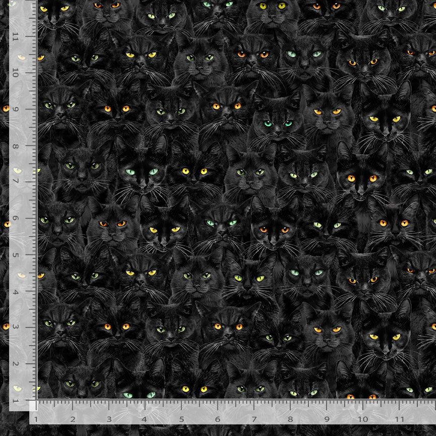 Timeless Treasures - Black Cats Magic - 1/2 YARD CUT
