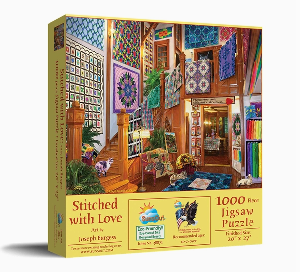 These puzzles are Eco-Friendly and made of Soy-Based Inks. They are made of recycled board and made in the USA. These interlocking pieces feature a durable construction. The large pieces make for an easy grip. It has 1000 pieces.