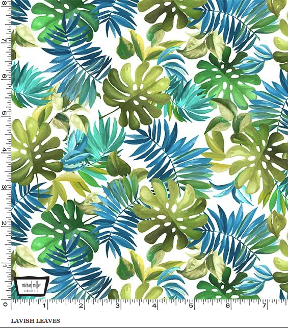 Super cute blue and green tropical leaves on a white background from the Lavish Leaves collection.