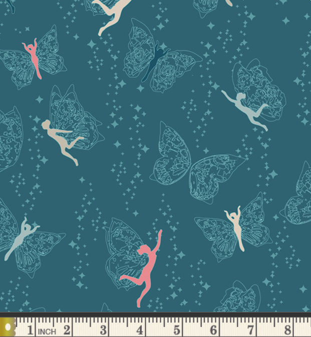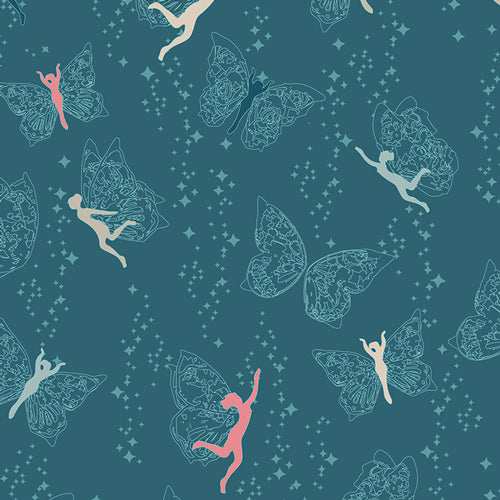 Fairies on a dark teal background with stars from the Flower Child collection.