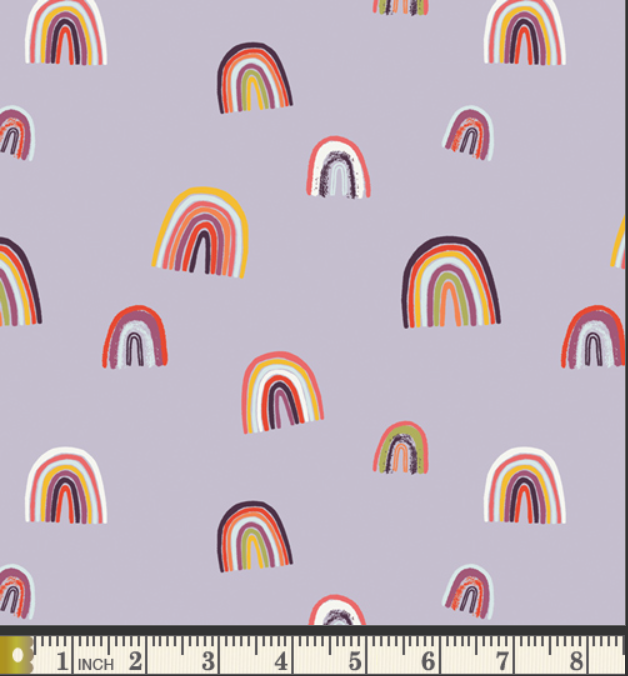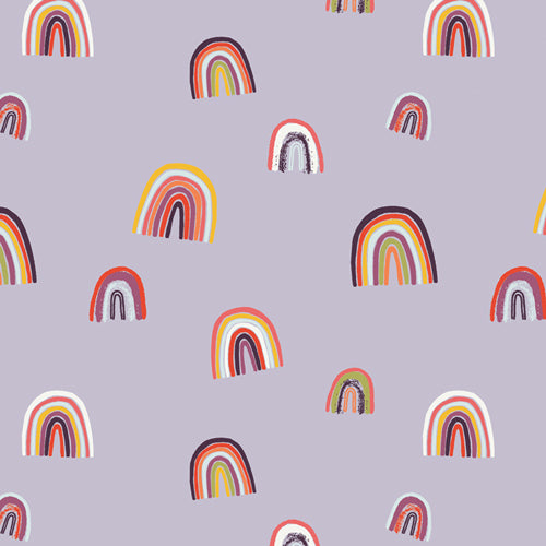 Graphic yellow and purple rainbows on a lavender background from the Kushukuru collection.