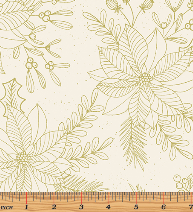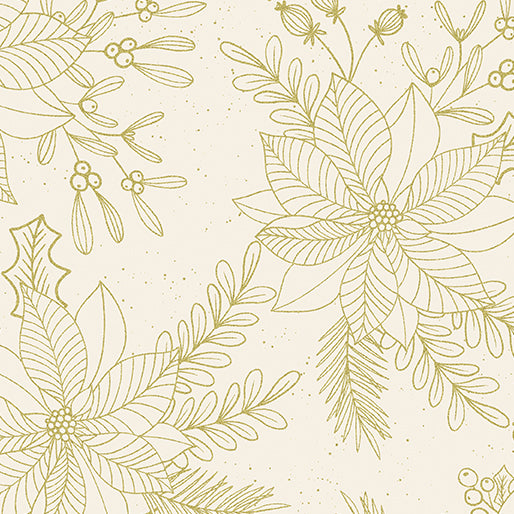 Gold metallic poinsettias on a cream background with gold speckles from the Holiday Sparkle collection.