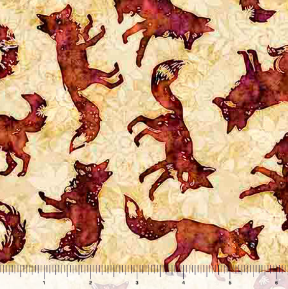 Adorable print with foxes on a mottled beige background from the Wild Wood collection.