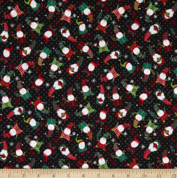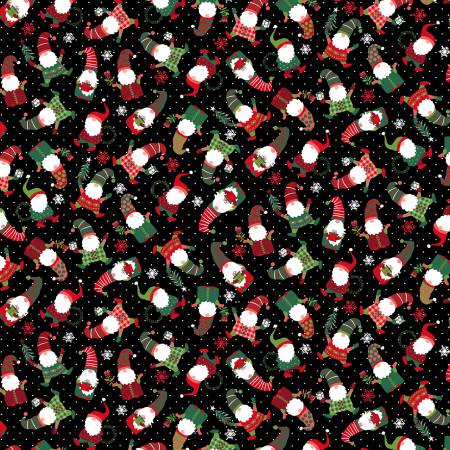 Small scale gnomes on a black background from the Feeling Festive collection.